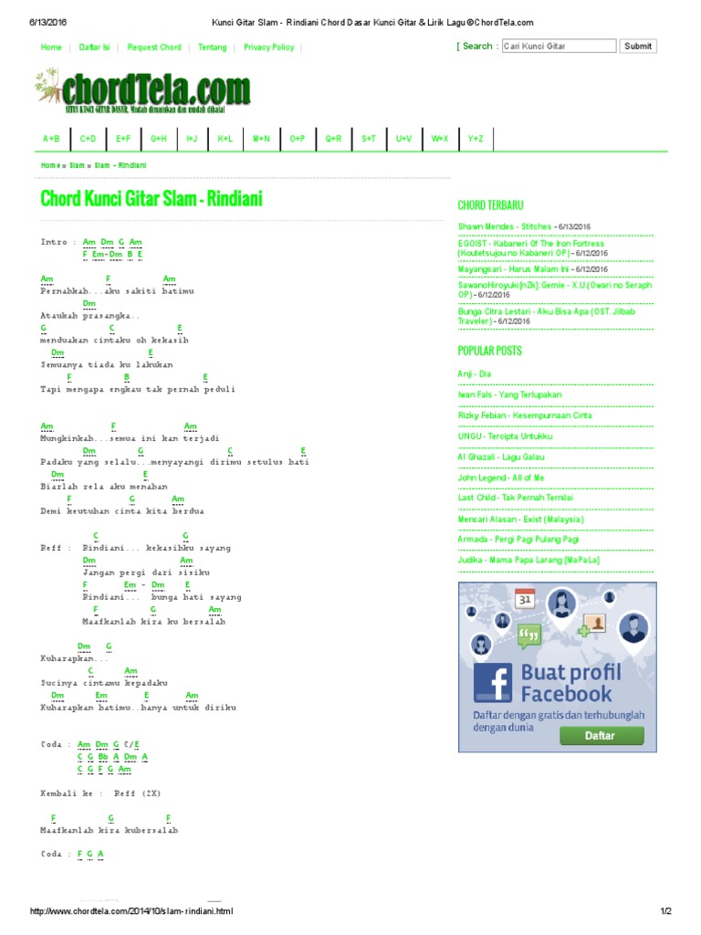 Semua Chord Gitar Kasih Slow Chordtela from assets.ladiestory.id intro c em f g 2x. Kapanlagi.com, situs entertainment terbesar di indonesia. Dia kini telah pergi jauh cm gm a am terbang tinggi tinggalkanku di sini chorus e g tuhan engkau tahu aku mencintainya a am dan tak ada yang bisa mengganti dirinya e g tuhan hanya dia yang selalu ada a am dalam anganku dalam benakku int e g a am. Am f am f e am dm am e f dm e reff. Mungkinkah aku meminta kisah kita selamanya chord gitar dan lirik lagu melawan restu yang dinyanyikan oleh mahalini. Malam ini em menyapa tubuhku d em am namun tidak dapat b dinginkan panasnya em. chorus c f mungkinkah kita kan slalu bersama dm c g walau terbentang jarak antara kita c f biarkan kupeluk erat bayangmu dm c g tuk melepaskan semua kerinduanku c g c g kau kusayang, slalu kujaga c dm g takkan kulepas slamanya c g c g hilangkanlah keraguanmu c dm g c pada diriku, di saat ku jauh darimu x. intro | a e | a d | d e | a d | verse 1 a e mana mungkin terjadi f#m a mana mungkin terjalin d e a terpadu cinta kita berdua a e mana mungkin ku dapat f#m a mana munkin kau dapat d …